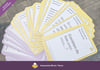 - Un fichier .zip, avec 8 jeux de cartes en différents formats (.pdf), imprimables au bureau ou chez vous. Les variantes proposent 2 types de colorisation (claire et couleur), 2 types de bordures (arrondies et droites) et 2 méthodes d'impression et d'assemblage (impression recto-verso et par pliage).
