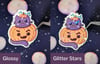 Add a touch of charm with our adorable Pumpkin Cat sticker, purr-fect for adding a touch of spookiness to your day! Featuring a cute purple cat with a tiny pumpkin hat peeking out of a carved jack-o'-lantern.