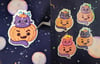 This Pumpkin Cat sticker is one of five in the "Spooky Cat" collection, which also includes Orange Skeleton Cat, Witchy Cat, Head Skeleton Cat, and Ghost Cat.